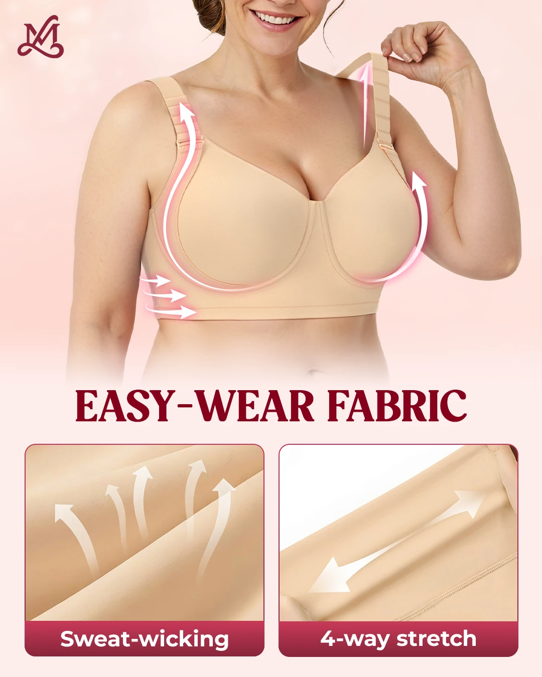 I was skeptical because I’ve been disappointed before, but this bra feels thoughtfully designed. The lift feels natural, not forced, and the pressure doesn’t move around during the day. I already ordered a second color.
